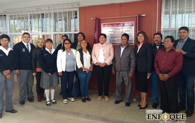 San Andrés Cholula, Pue. La presidenta municipal, Karina Pérez Popoca, realizó la inauguración del techado de la plaza cívica en la Telesecundaria Máximo Serdán Alatriste, ubicada en la junta auxiliar de San Rafael Comac, lo cual tuvo una inversión de casi un millón de pesos en beneficio de 319 estudiantes.