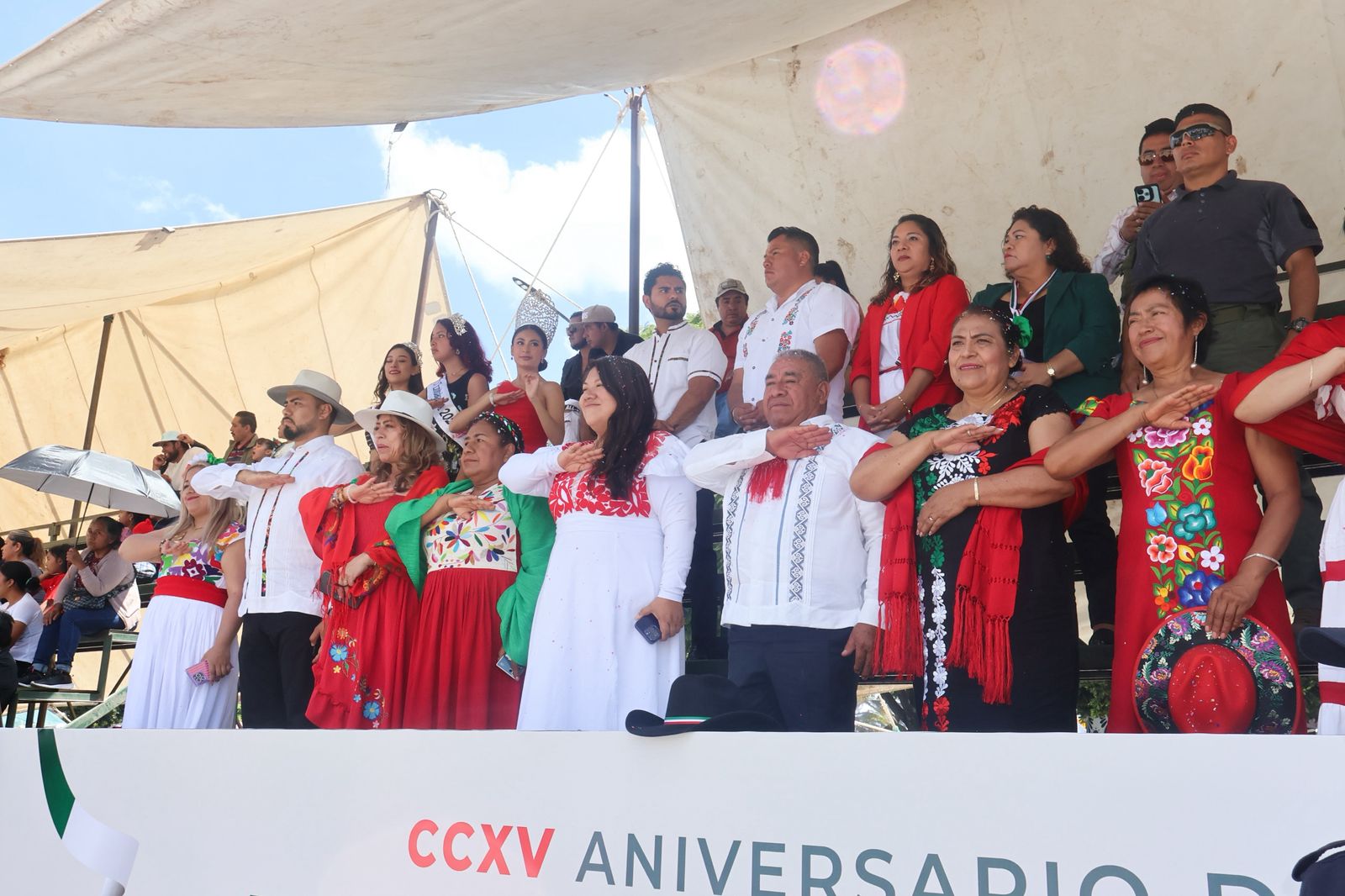 Posteriormente, desde el balcón central del Palacio Municipal y acompañado de autoridades estatales y regidores, el presidente municipal dio el Grito de Independencia, recordando a los héroes que dieron patria y libertad a México.