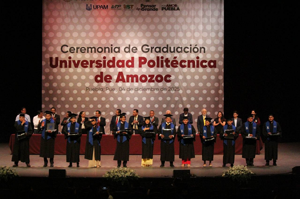 Con el propósito de formar jóvenes líderes a través de un modelo educativo basado en competencias, el rector de la Universidad Politécnica de Amozoc (UPAM), José Alejandro Sánchez Ramírez, llevó a cabo la graduación de 400 egresadas y egresados, con la presencia de la secretaria de Bienestar del Estado de Puebla, Laura Artemisa García Chávez, como madrina de generación.