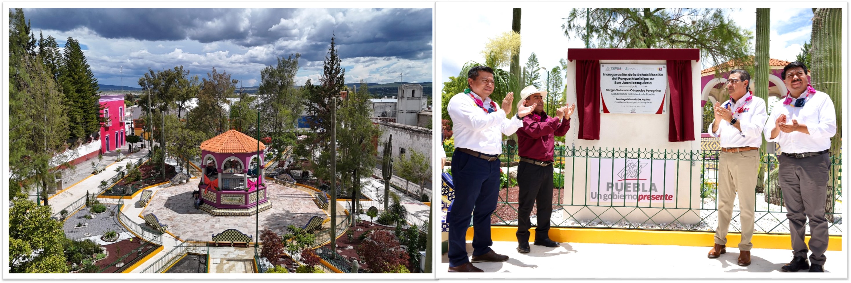 San Juan Ixcaquixtla, Pue.- En su visita por el municipio de San Juan Ixcaquixtla, el gobernador del estado de Puebla, Sergio Salomón Céspedes Peregrina presidió la inauguración de la rehabilitación del Parque Municipal, así como el otorgamiento de beneficios para el bienestar, títulos de propiedad y certificados de construcción de espacios educativos.