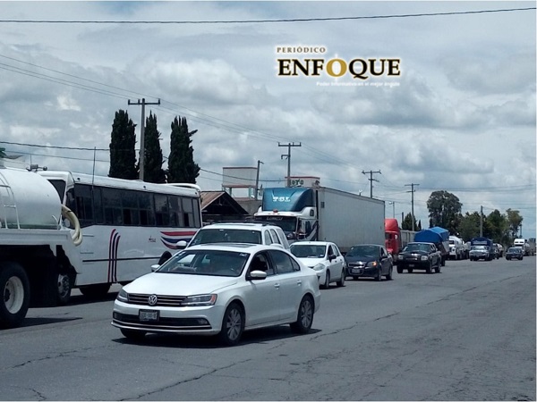 Amozoc, Puebla. Caos vial se vivió la mañana de este lunes en la carretera Federal Puebla-Tehuacán, a la altura del municipio de Amozoc, debido a que pobladores de ese municipio bloquearon los accesos al municipio en demanda de seguridad.