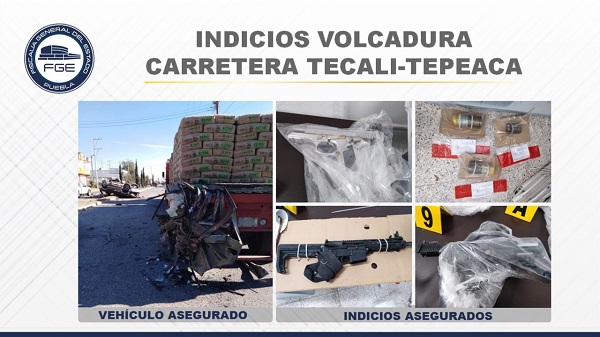 Foto: Cortesía Fiscalía investiga volcadura en carretera Tecali–Tepeaca; sujetos iban armados con granadas