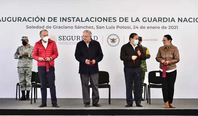 El viernes 22 de enero de 2021, AMLO fue a inaugurar las instalaciones de la Guardia Nacional en Sabinas Hidalgo, Nuevo León, ahí estuvo en contacto directo con Jaime Heliodoro Rodríguez Calderón más conocido como “El Bronco”, actual gobernador de ese estado de la república mexicana, posteriormente y hoy sábado 24 de enero de 2021, hizo algunos recorridos por el campo e inauguró las instalaciones de la Guardia Nacional en Soledad de Gaciano Sánchez, en el estado de San Luis Potosí y también estuvieron con él Rosa Icela Rodríguez Velázquez, Secretaria de Seguridad y Protección Ciudadana y Juan Manuel Carreras, gobernador de este estado.