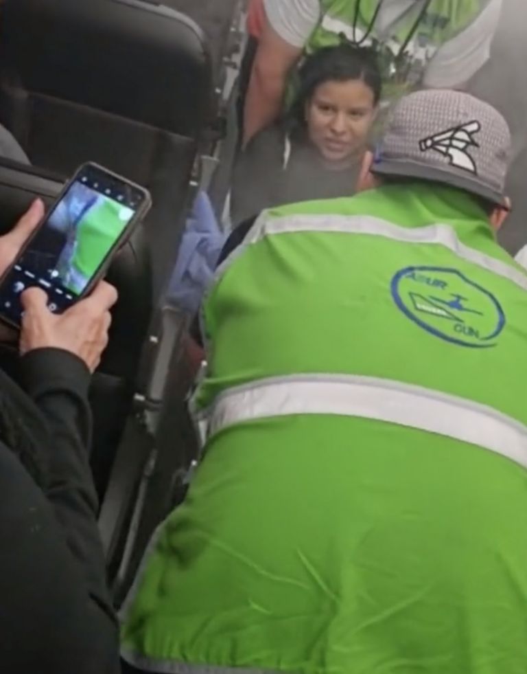 Varios pasajeros documentaron los hechos y publicaron los videos en redes sociales, la usuaria de TikTok subió dos grabaciones en donde se ve como la fémina originaria de Nicaragua es trasladada por los equipos de emergencia, mientras los demás pasajeros la reciben diciéndole “felicidades” y hasta aplauden.