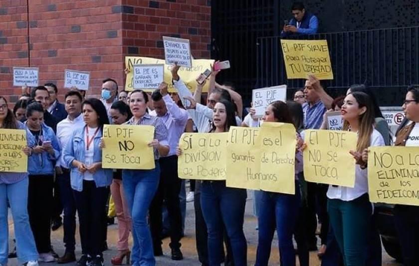 Ciudad de México.- Los trabajadores del Poder Judicial de la Federación dieron a conocer que harán un paro de labores desde este miércoles 18 y hasta el próximo martes 24 de octubre, esto para expresar su desacuerdo con la iniciativa de Morena que pretende reducir 13 de los 14 fideicomisos con los que cuenta dicha dependencia. Esta medida fue tomada tras una votación entre diversos tribunales y juzgados, quienes aprobaron la suspensión de actividades, afuera de la sede del PJF de San Lázaro.