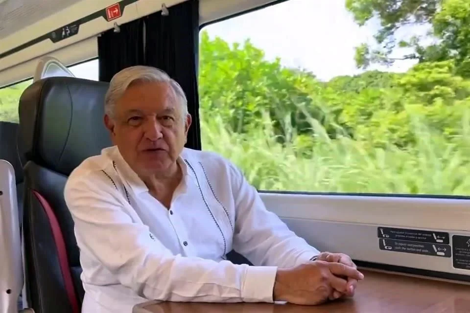 Por medio de sus redes sociales, AMLO subió un video a bordo del tren, pues hizo un segundo recorrido de supervisión.