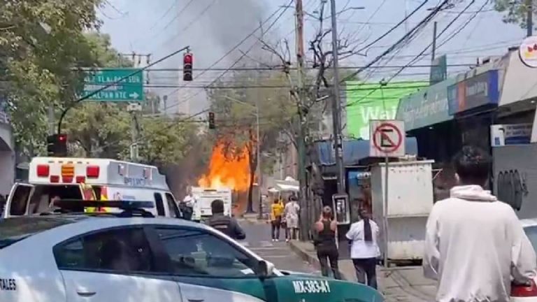 En uno de los videos, se aprecia cuando la unidad que lleva cilindros de gas está ardiendo en llamas, mientras los servicios de emergencia de la Secretaría de Seguridad Ciudadana de la capital acordonaron el lugar para impedir que el siniestro se extendiera.