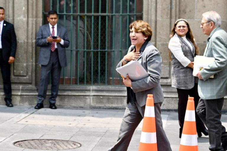 Ciudad de México.- Delfina Gómez Álvarez, virtual Gobernadora del Estado de México, acudió este jueves a Palacio Nacional donde sostuvo una reunión de trabajo con autoridades del Gobierno Federal y diversos gobernadores.