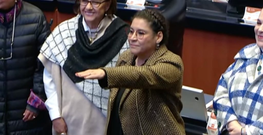 Conforme a lo estipulado en la Constitución, Ana Lilia Rivera, presidenta de la Mesa Directiva del Senado, le tomó protesta a Lenia Batres, quien desempeñará el cargo durante los siguientes 15 años.