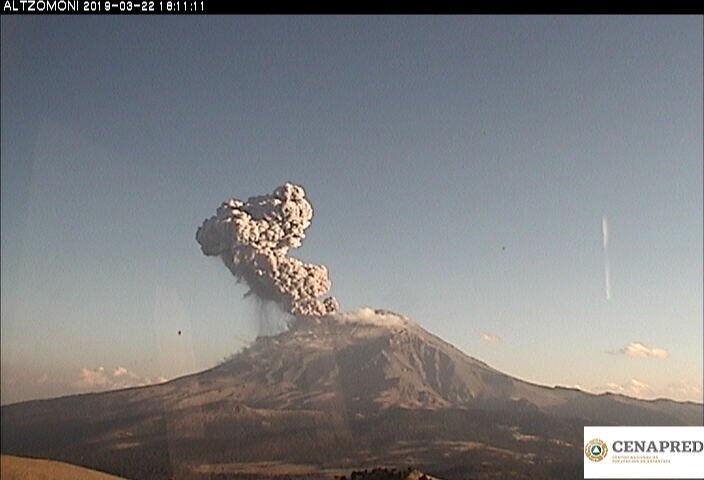 En volcán Popocatépetl registró una explosión con alto contenido de ceniza, la columna alcanzó una altura de 2 kilómetros sobre el cráter con dirección hacia el Este, hubo además lanzamiento de material incandescente sobre las laderas del coloso a una distancia aproximada de 1 kilómetro, esta actividad está dentro de los escenarios del semáforo Amarillo Fase Dos.