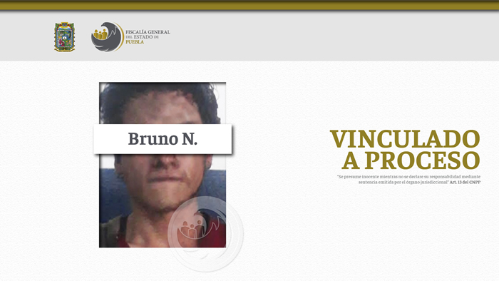 La Fiscalía General del Estado de Puebla obtuvo de la autoridad judicial la vinculación a proceso de Bruno N., acusado del delito de tentativa de feminicidio ocurrido en la colonia Miguel Hidalgo de la ciudad de Puebla.