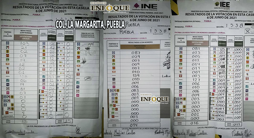 Col. La Margarita, Puebla, Puebla, Resultados de la votación. 07 Junio de 2021-Seccion 1538. Ayuntamiento, Distrito electoral local 16 y Distrito electoral federal 12. Ver galería 3 fotos.