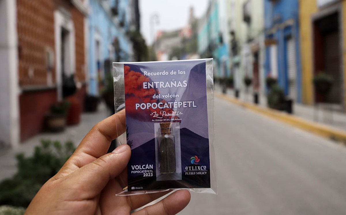 Puebla.- El ingenio mexicano se ve reflejado una vez más en el municipio de Atlixco, en donde sus pobladores sacaron ventaja de la actividad del volcán Popocatépetl para elaborar un souvenir que se robó la atención de todos los turistas. El material volcánico fue enfrascado en un recipiente de vidrio para convertirse en un imán para el refrigerador y acompañado de frases chuscas que lo hacen único.