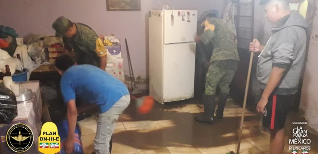 Recordó que soldados, habitantes afectados, bomberos y elementos de Protección Civil realizaron labores de limpieza, retiro de agua y lodo, además se proporcionó seguridad.