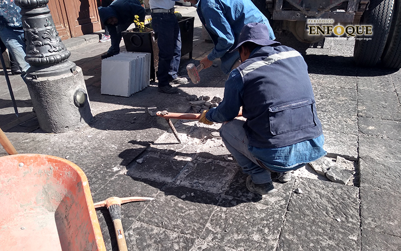 Detalló que el trabajo consistirá en la reposición de lajas, renivelación de registros eléctricos e hidrosanitarios, reposición de bolardos y la colocación de huella podotáctil, mismos que para las vialidades en las que se realizarán equivalen a una inversión total de 750 mil pesos.