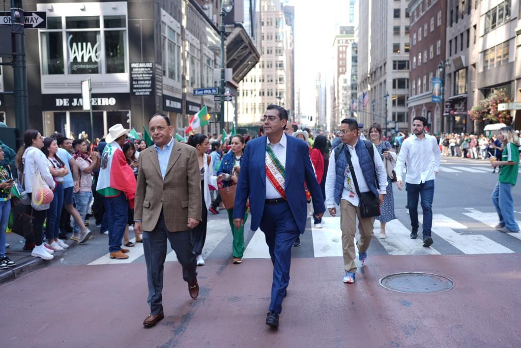 NUEVA YORK, EE.UU.- Para fortalecer los lazos entre el gobierno estatal y poblanas y poblanos que radican en Estados Unidos, el gobernador Sergio Salomón y la presidenta honoraria del Patronato del SEDIF, Gaby Bonilla participaron en el Desfile Conmemorativo de la Independencia de México en dicha ciudad.