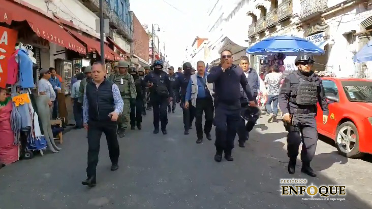 Puebla, Pue. Como parte de la estrategia en el combate a la venta de objetos prohibidos y celulares de dudosa procedencia, Integrantes del Grupo de Coordinación Territorial para la Construcción de la Paz (GRUCOPA) llevaron a cabo un nuevo operativo en diversos puntos del Centro Histórico de Puebla.