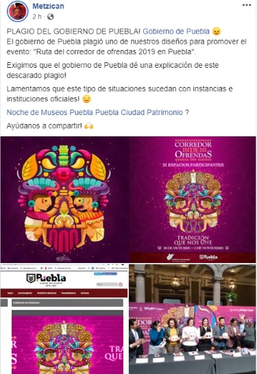 Cabe señalar que el área de Comunicación Social ha evitado convocar a la prensa a eventos públicos de Rivera Vivanco, luego de que en redes sociales la marca de diseño “Metzican” acusó al Ayuntamiento de Puebla de plagiar uno de sus diseños para promover el “Corredor de Ofrendas 2019”, evento donde se exhiben 21 altares del 28 de octubre al 3 de noviembre.