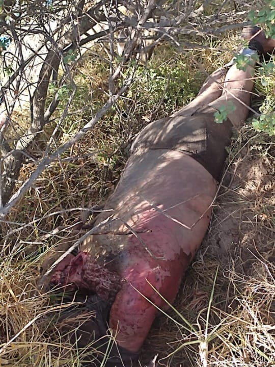 El occiso estaba semidesnudo, solo portaba un bóxer color café y zapatos del mismo color. Es de complexión robusta, moreno, cabello negro. Se presume que al menos llevaba un par de días muerto.