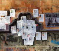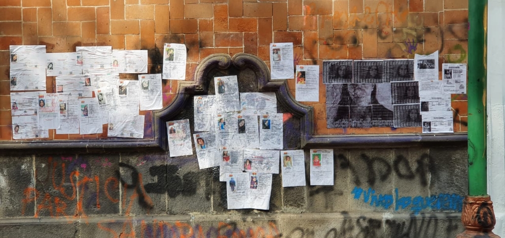 Finalmente, con pegamento colocaron los boletines de búsqueda sobre una pared del Palacio de Gobierno.