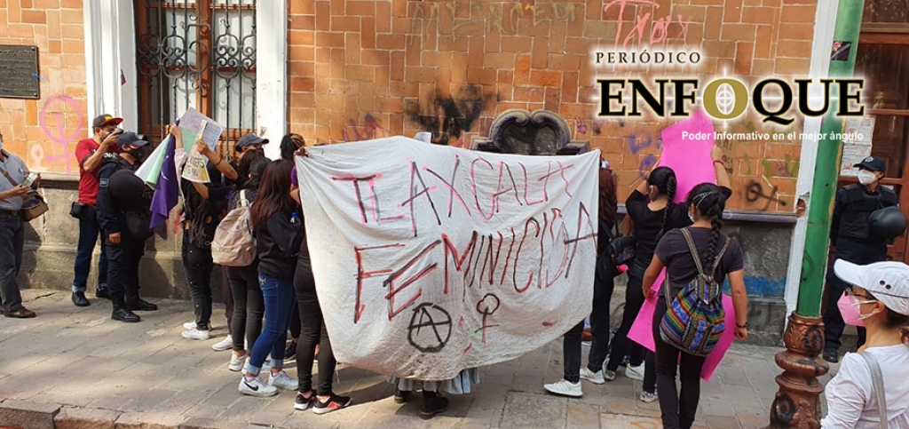 Con gritos y con pancartas en mano, las feministas arribaron al Palacio de Gobierno para exigir a las autoridades estatales investigar el caso y sancionar a los responsables acorde a la ley.