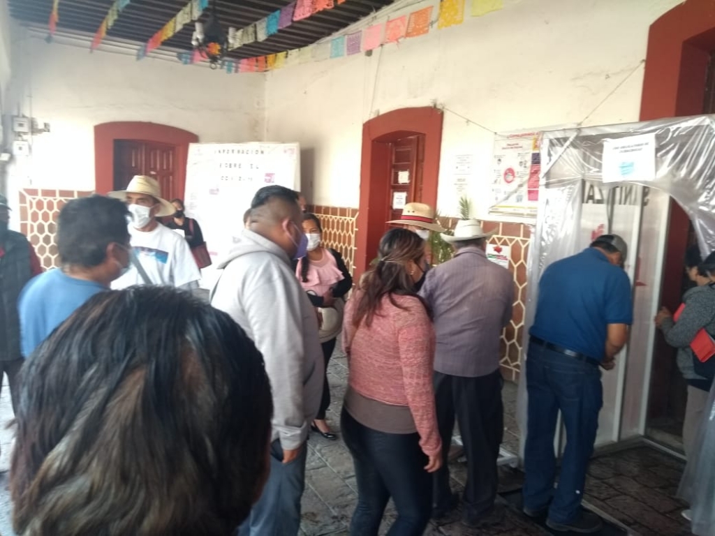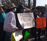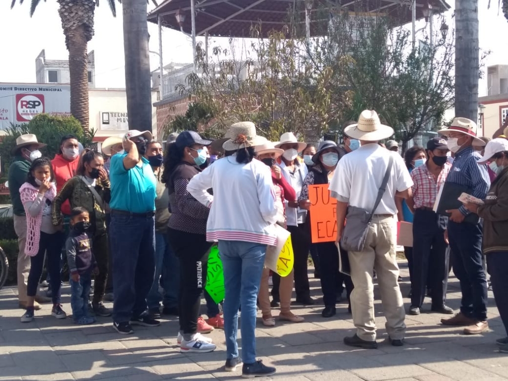 Tlaxcala, Tlax.- Pobladores de la comunidad de Santa Justina Ecatepec, municipio de Ixtuacuixtla, se manifestaron al exterior de la presidencia municipal, para exponer la falta e incumplimiento con la obra pública.