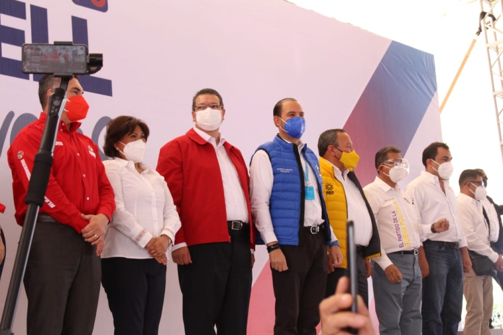 Al acto también se dieron cita el gobernador del Estado, Marco Mena, los ex gobernadores Beatriz Paredes y Tulio Hernández, los dirigentes estales del PRD, PRI , PAN, PS y PAC y centenas de simpatizantes de las cinco fuerzas políticas que integran la alianza.