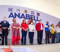 Tlaxcala, Tlax., Ante miles de simpatizantes de los cinco partidos políticos que conforman la coalición "Unidos por Tlaxcala", Anabell Ávalos Zempoalteca, rindió protesta como candidata a la gubernatura del estado.